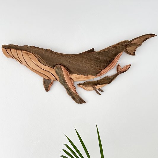 Ocean Serenade Wooden Whale Sculpture with Calf