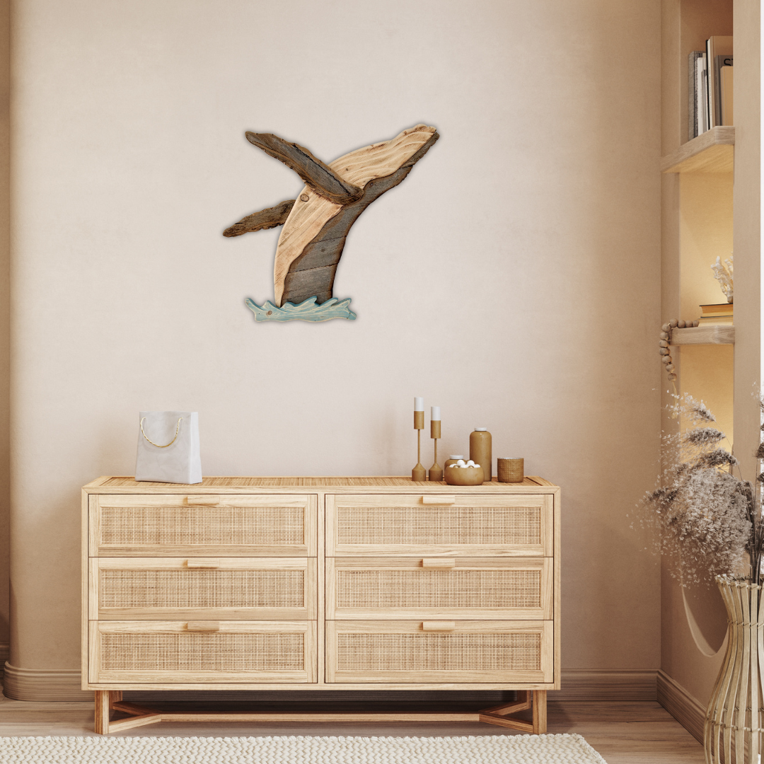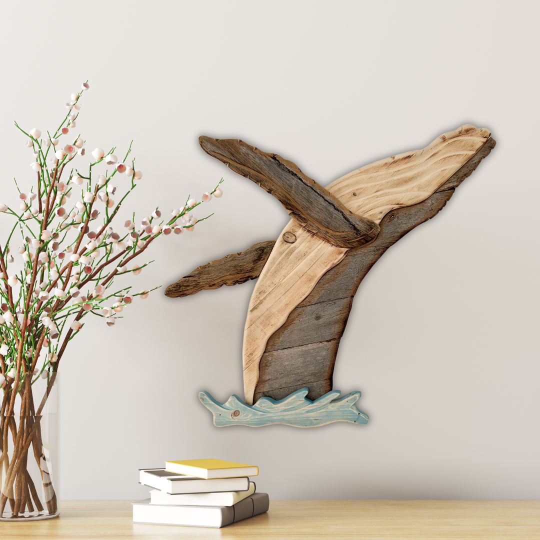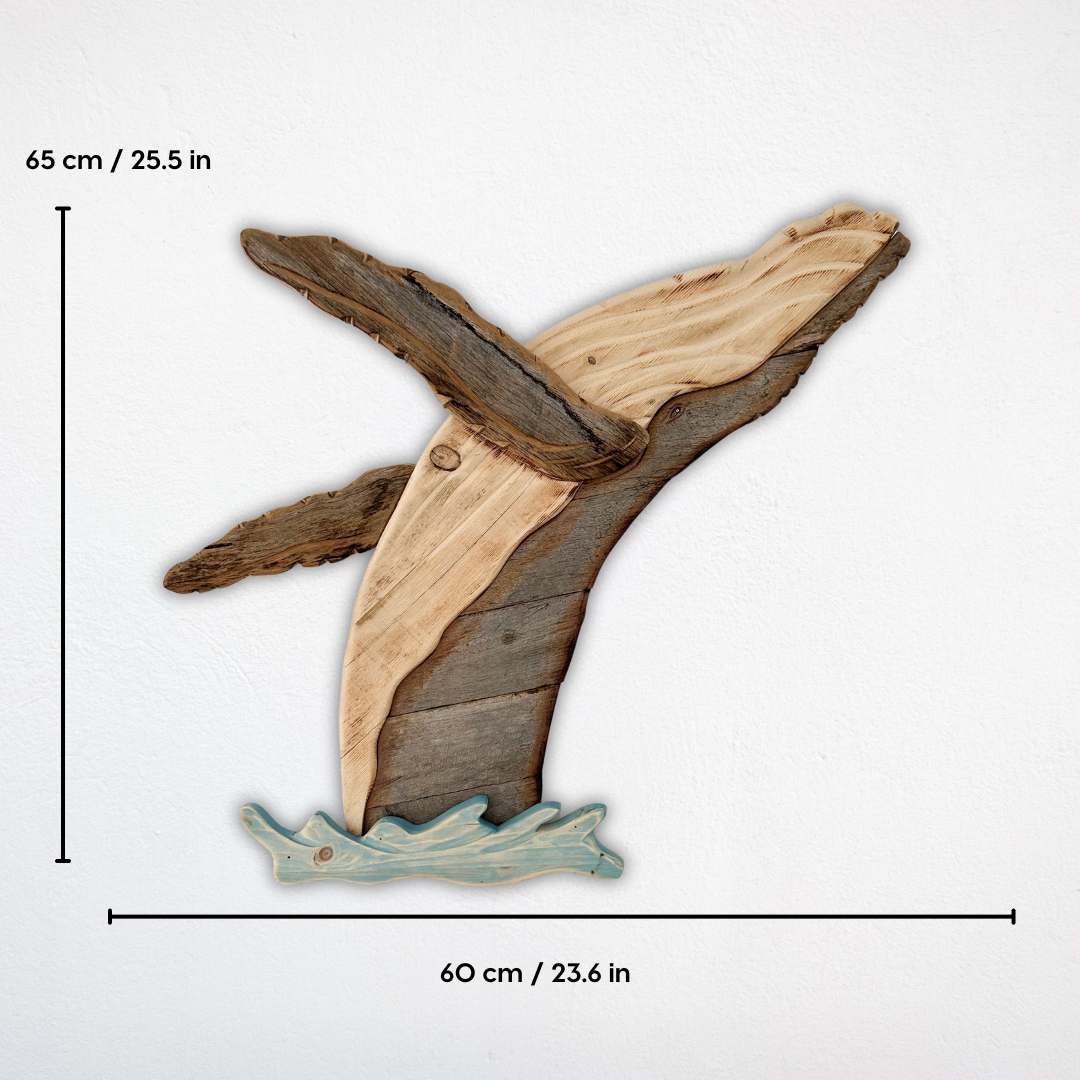 Add the thrilling beauty of the ocean to your home with our wooden breaching whale sculpture, beautifully handcrafted from 100% reclaimed Australian timber. Each sculpture features unique coloration and patterns, ensuring every piece is one-of-a-kind. Perfect for marine life enthusiasts and eco-conscious individuals, this breaching whale sculpture is a customer favorite.