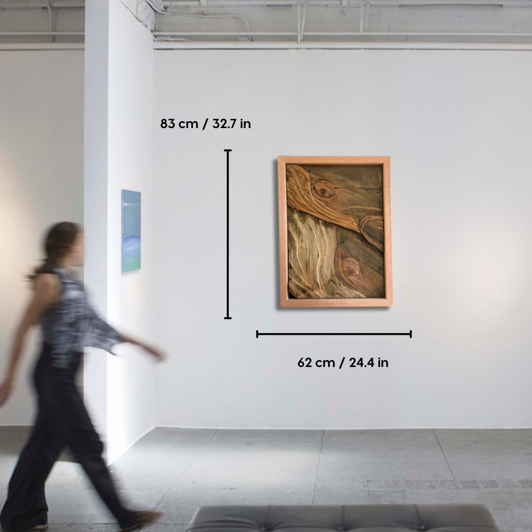 Measuring 62 cm x 83 cm x 4 cm, this sculpture is one of a kind and will not be recreated.