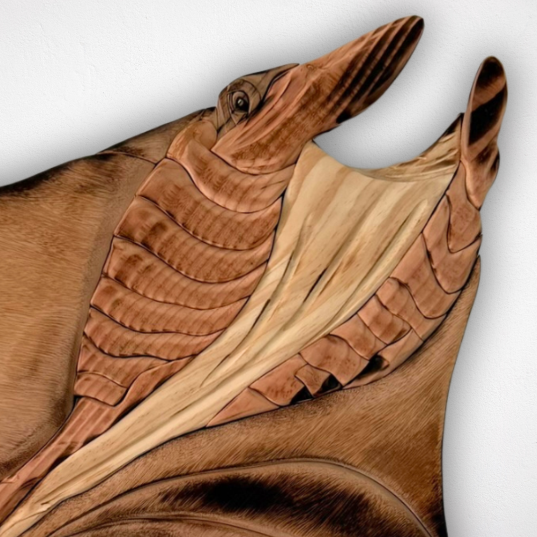 Inspired by a powerful underwater encounter years ago, this piece represents peace, strength, and our connection to the ocean. As manta rays face growing threats from overfishing and pollution, this sculpture stands as a symbol of awareness, hope, and action.