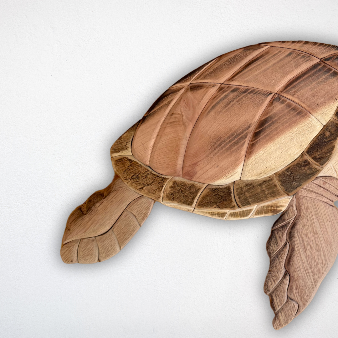 Add the beauty of the ocean to your space with our handcrafted wooden Sea Turtle sculpture, designed to bring a sense of calm and connection to nature. Carefully crafted from 100% reclaimed Australian timber, each sculpture highlights the intricate patterns and graceful form of the sea turtle, creating a stunning focal point for any home or office. The unique wood grain and texture give it a natural, organic feel, making it a perfect addition to coastal decor and marine-inspired interiors.
