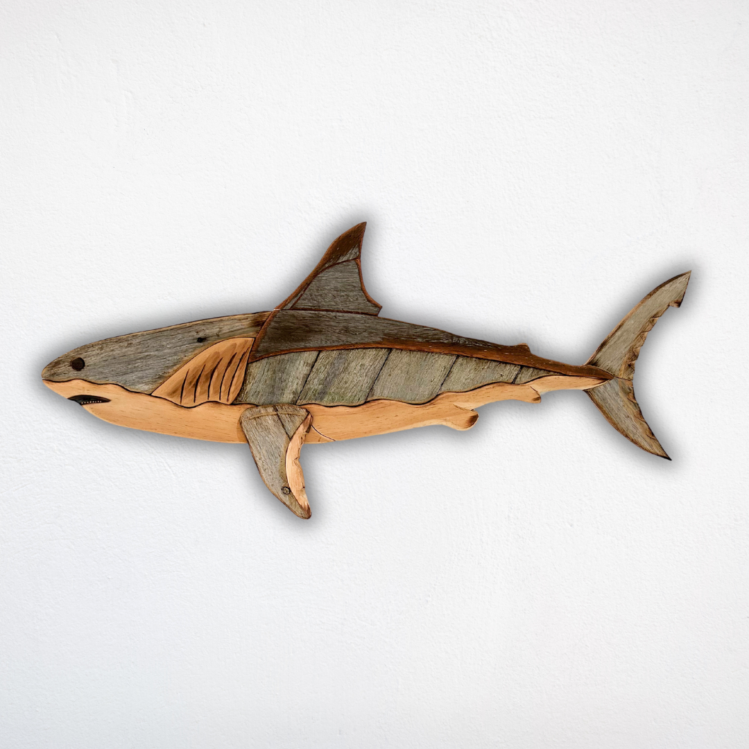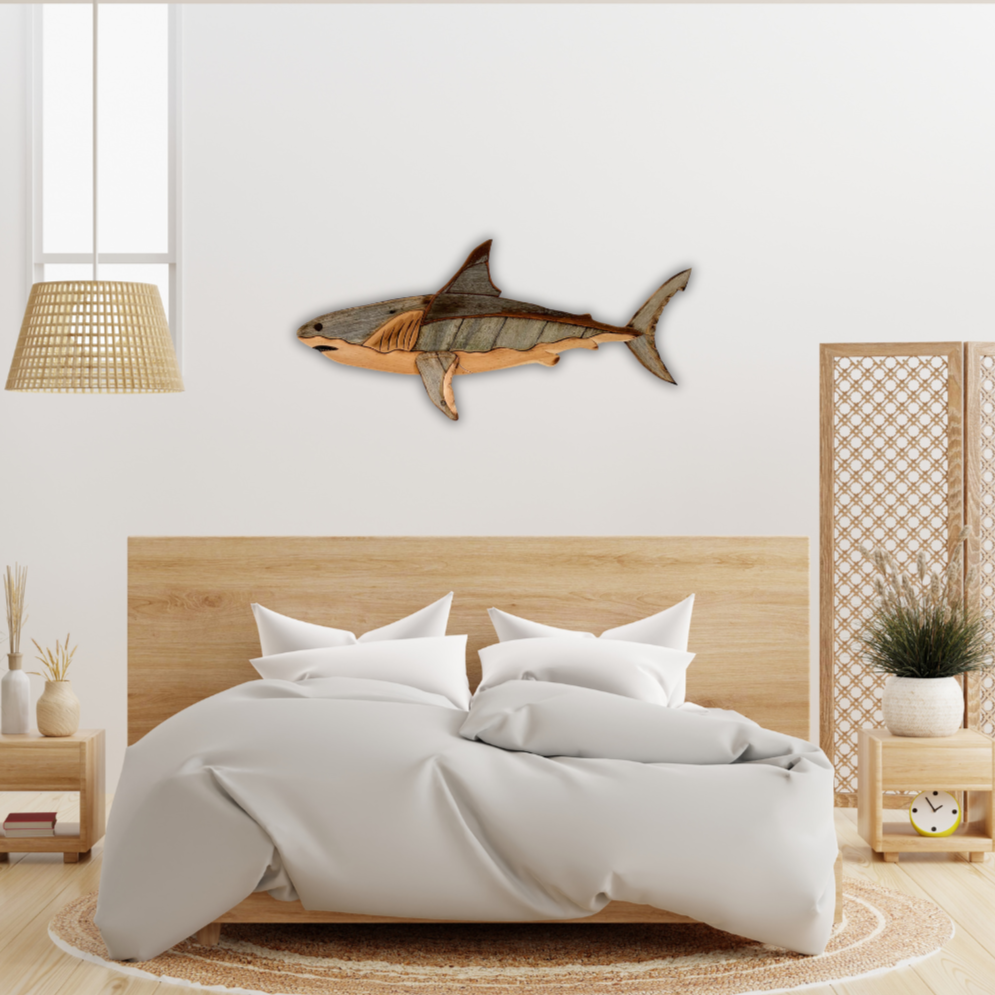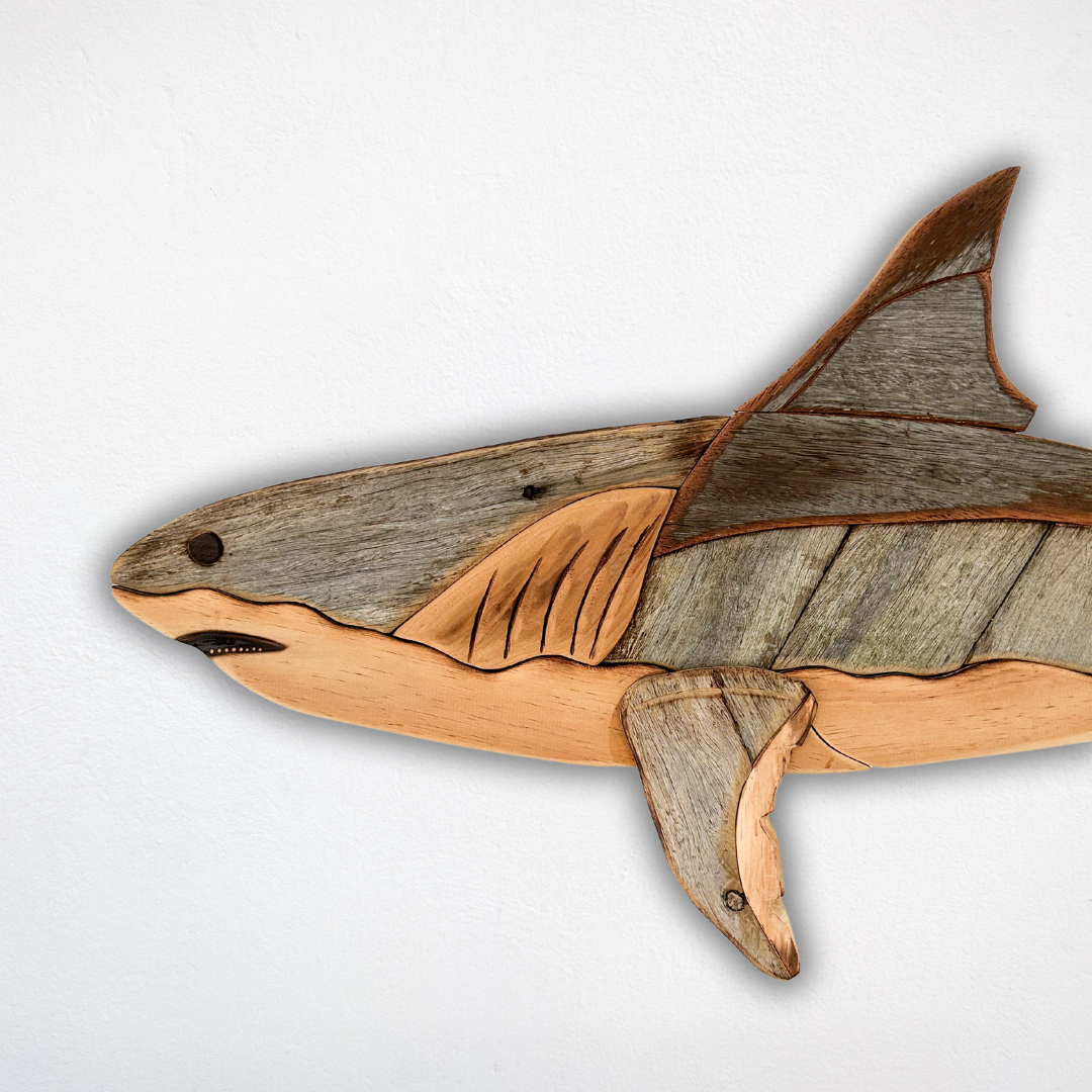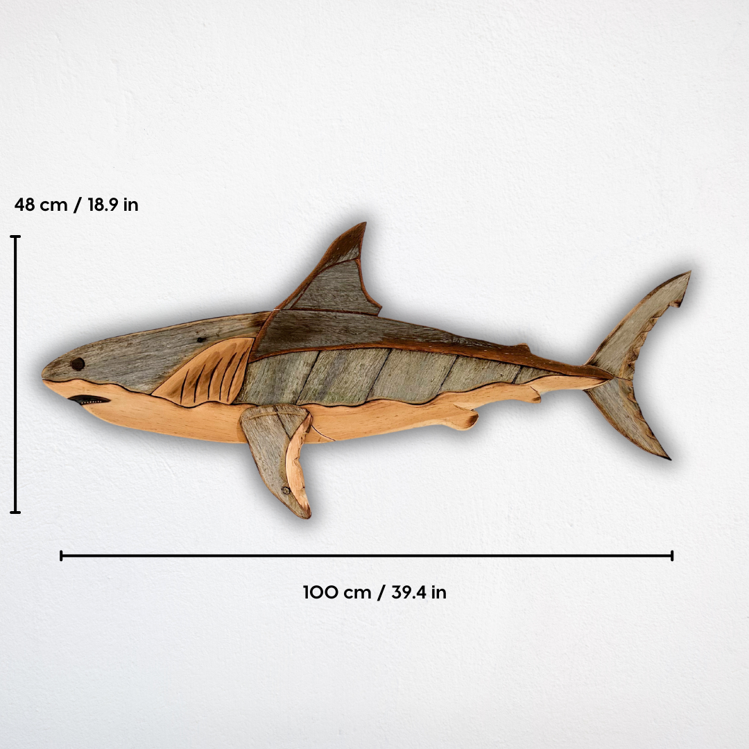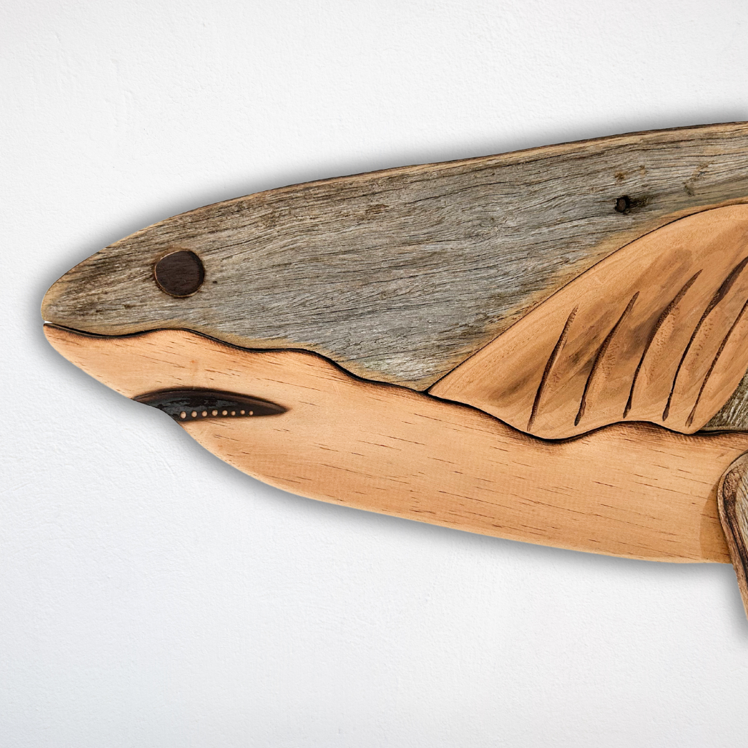 Add the impressive beauty of the ocean to your home with our wooden great white shark sculpture, beautifully handcrafted from 100% reclaimed Australian timber. Each sculpture features unique coloration and patterns, ensuring every piece is one-of-a-kind. Perfect for marine life enthusiasts and eco-conscious individuals, this great white shark sculpture is a customer favorite.