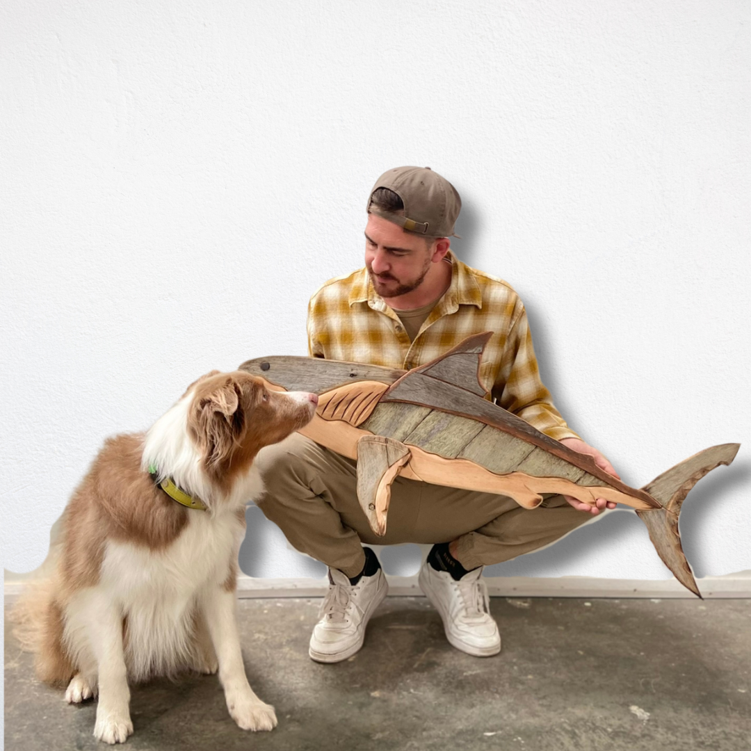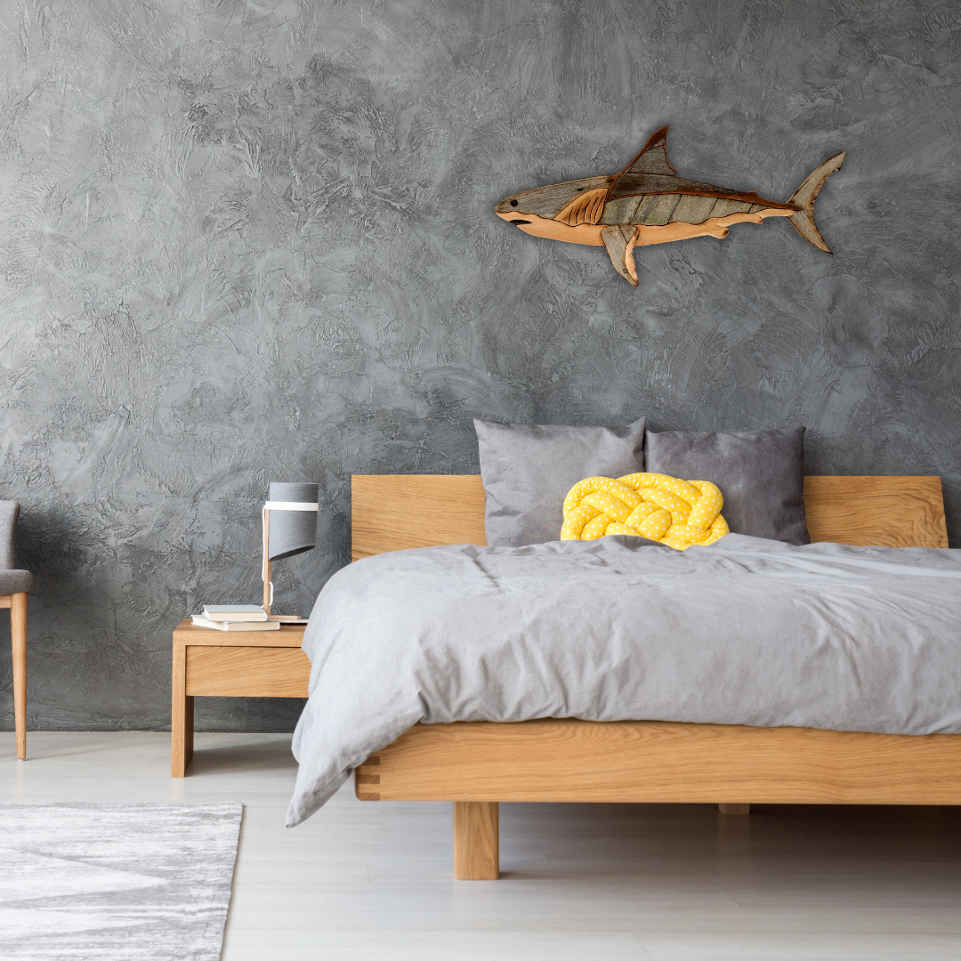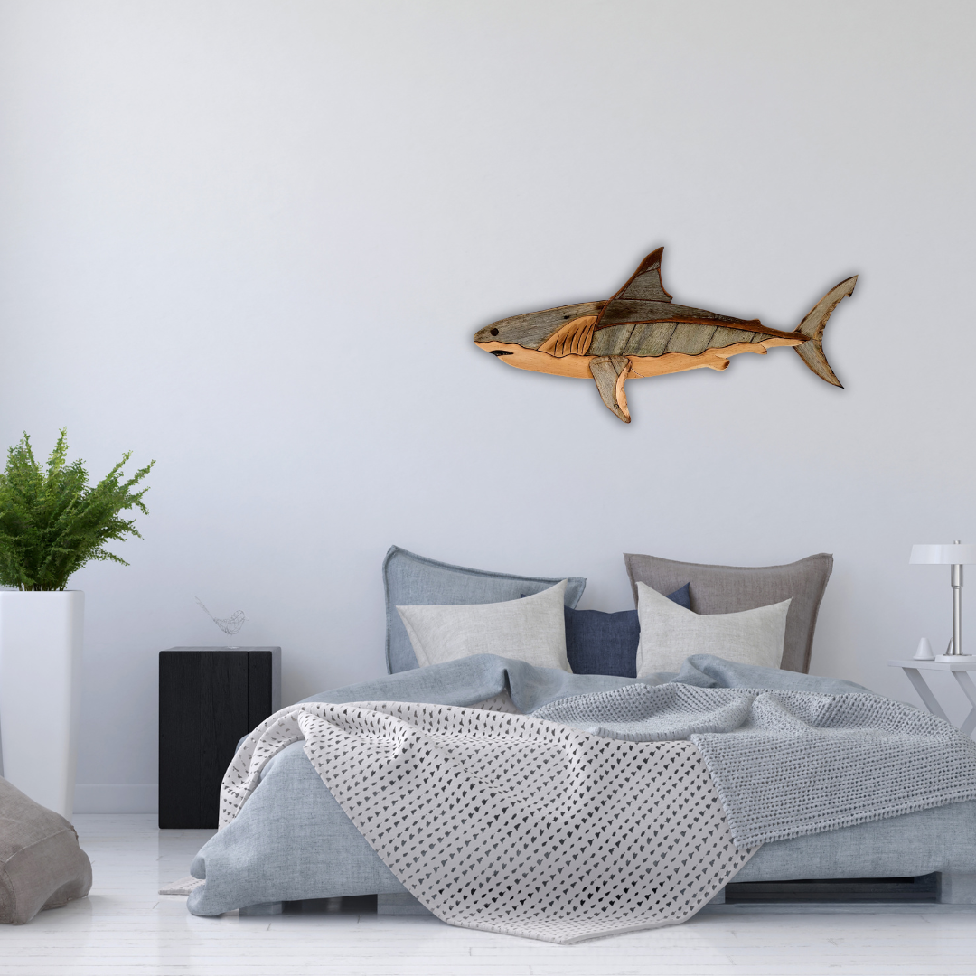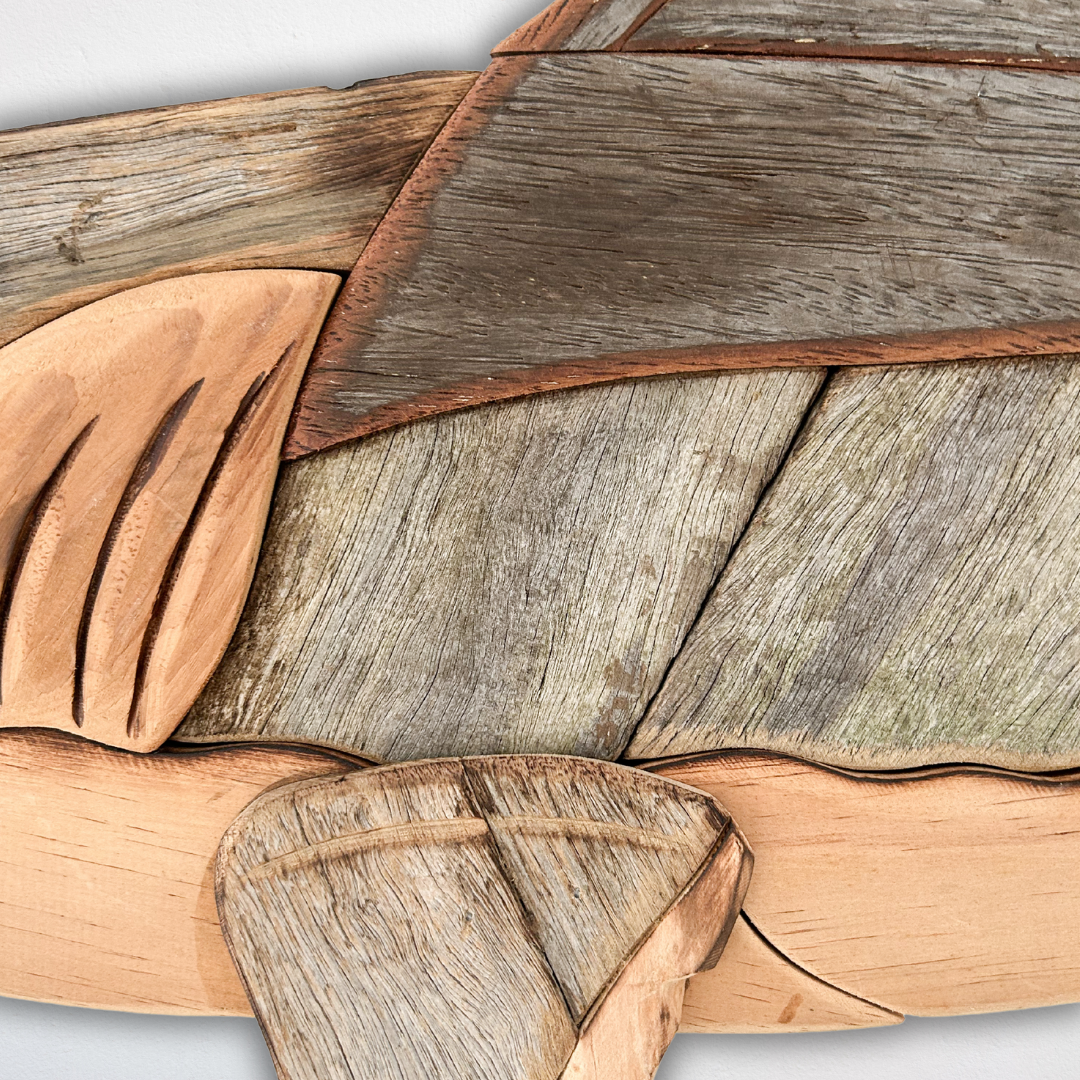 Add the impressive beauty of the ocean to your home with our wooden great white shark sculpture, beautifully handcrafted from 100% reclaimed Australian timber. Each sculpture features unique coloration and patterns, ensuring every piece is one-of-a-kind. Perfect for marine life enthusiasts and eco-conscious individuals, this great white shark sculpture is a customer favorite.