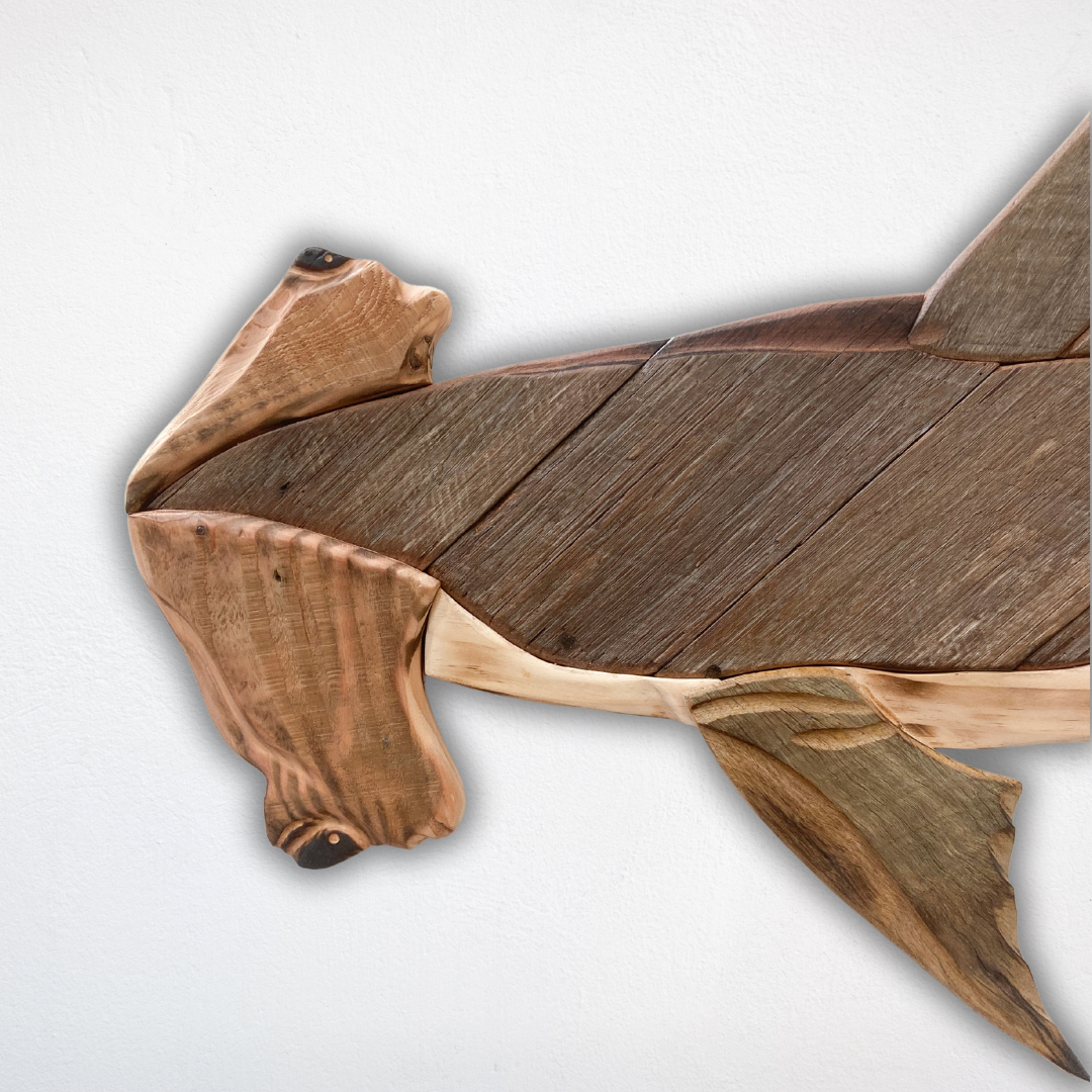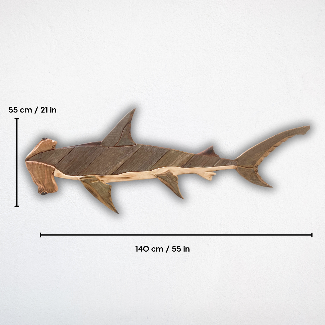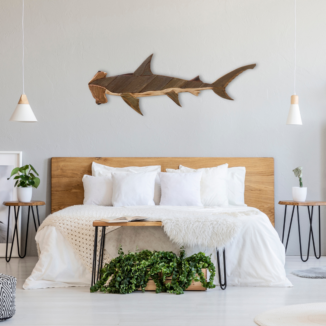Bring the ocean's majesty to your home with our wooden hammerhead shark wall art, beautifully handcrafted from 100% reclaimed Australian timber. Each sculpture features unique coloration and patterns, ensuring every piece is one-of-a-kind. Perfect for marine life enthusiasts and eco-conscious individuals, this hammerhead shark wall art is a customer favorite.