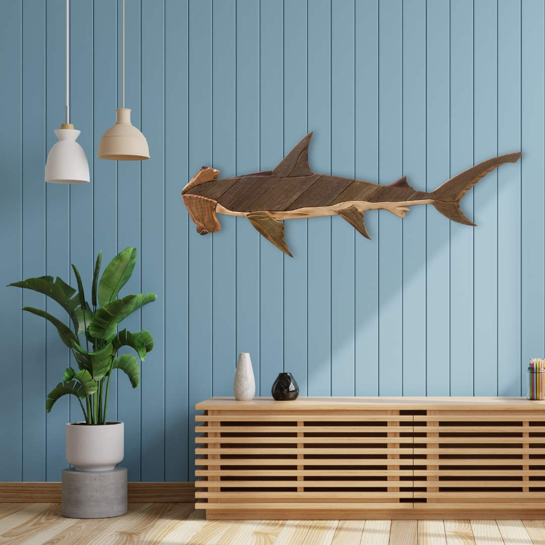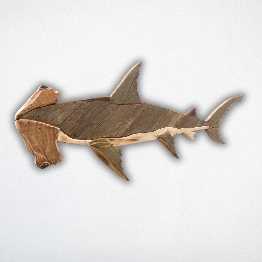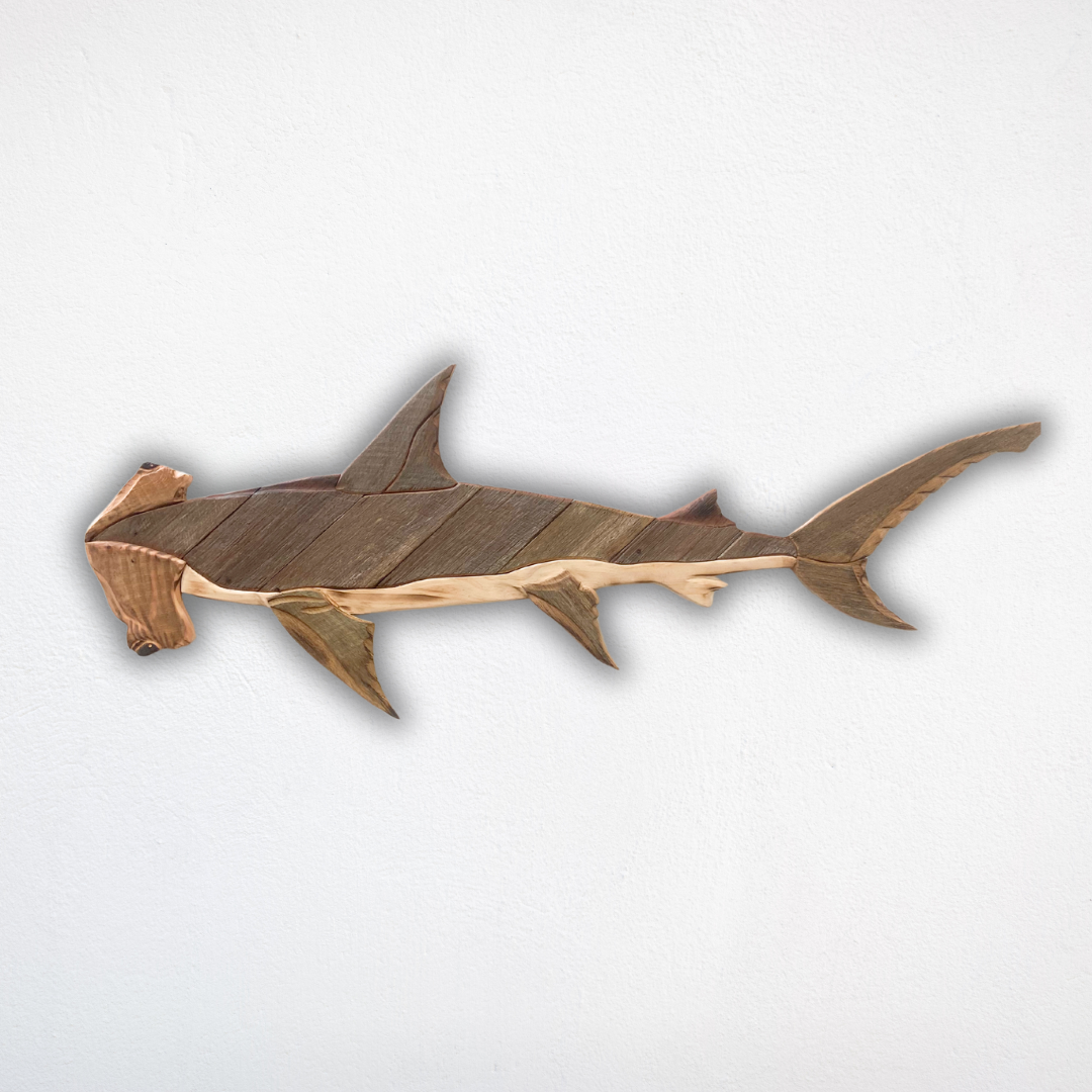 Bring the ocean's majesty to your home with our wooden hammerhead shark wall art, beautifully handcrafted from 100% reclaimed Australian timber. Each sculpture features unique coloration and patterns, ensuring every piece is one-of-a-kind. Perfect for marine life enthusiasts and eco-conscious individuals, this hammerhead shark wall art is a customer favorite.