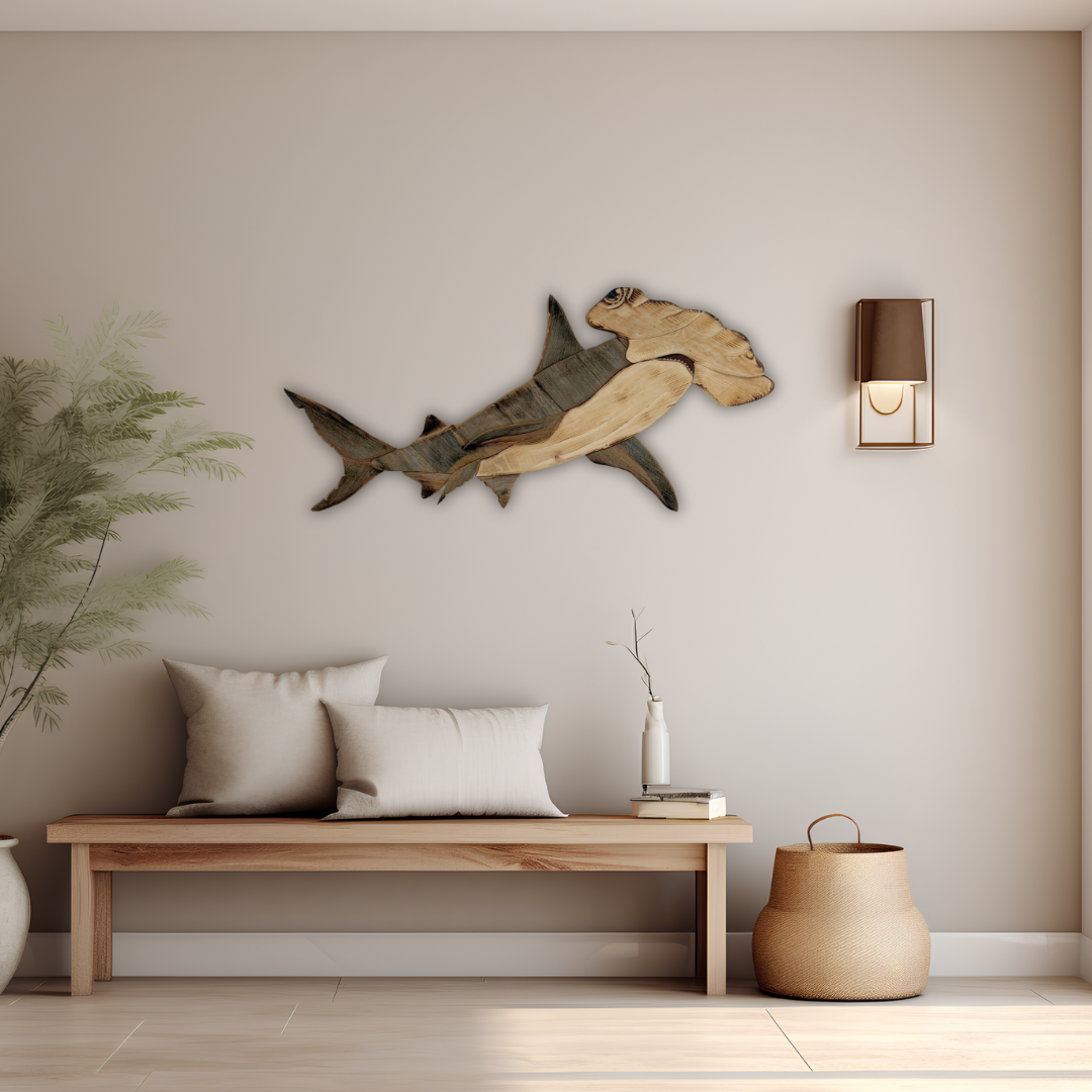 Bring the bold beauty of the ocean into your home with our Hammerhead Shark sculpture, a unique piece of coastal art handcrafted from 100% reclaimed Australian timber. Designed to capture the striking silhouette and power of the hammerhead shark, this sculpture is perfect for marine enthusiasts and eco-conscious decorators. The intricate details and natural wood textures create a stunning focal point for any home, office, or beachside retreat.